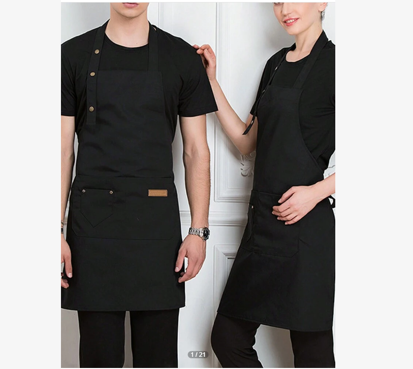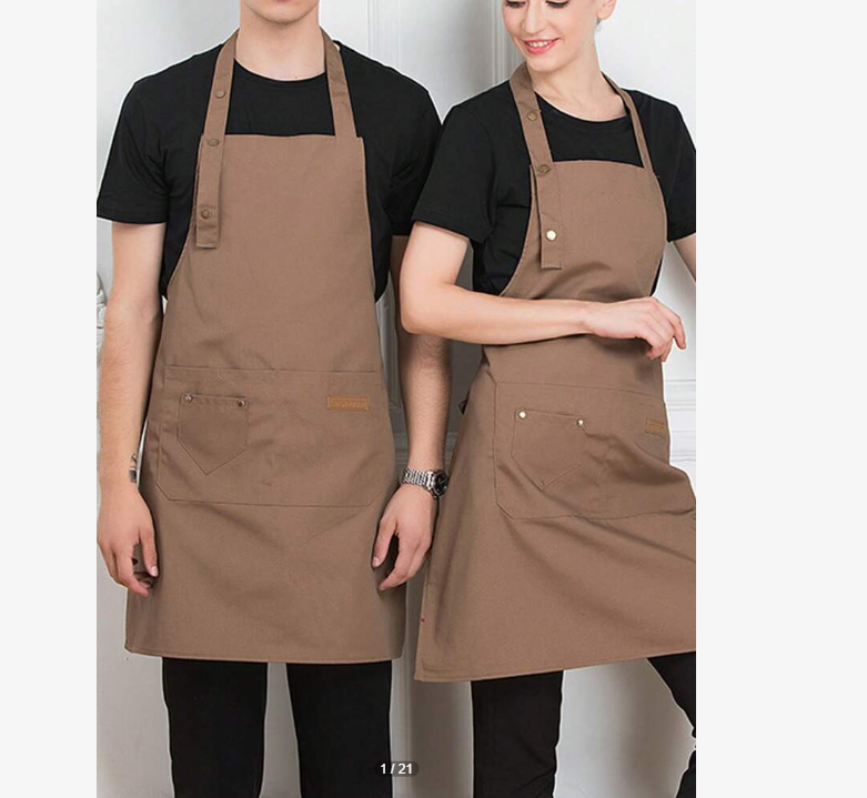 - With a pocket on this apron, so it can help store items well; it is designed with a hanging neck and waist strap, and can be adjusted in size by the 3 buttons on the shoulder strap, which is very practical.
